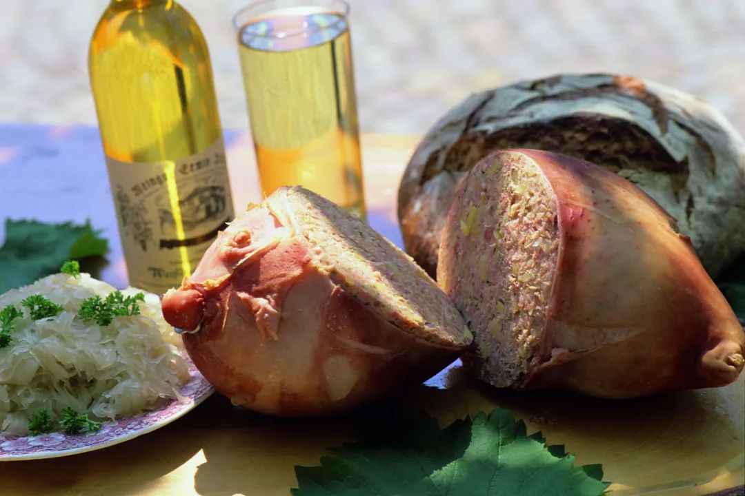 A specialty of the Rhineland-Palatinate region, Saumagen is made by stuffing a pig stomach with sausage meat, potatoes, and spices, then cooking and slicing it.